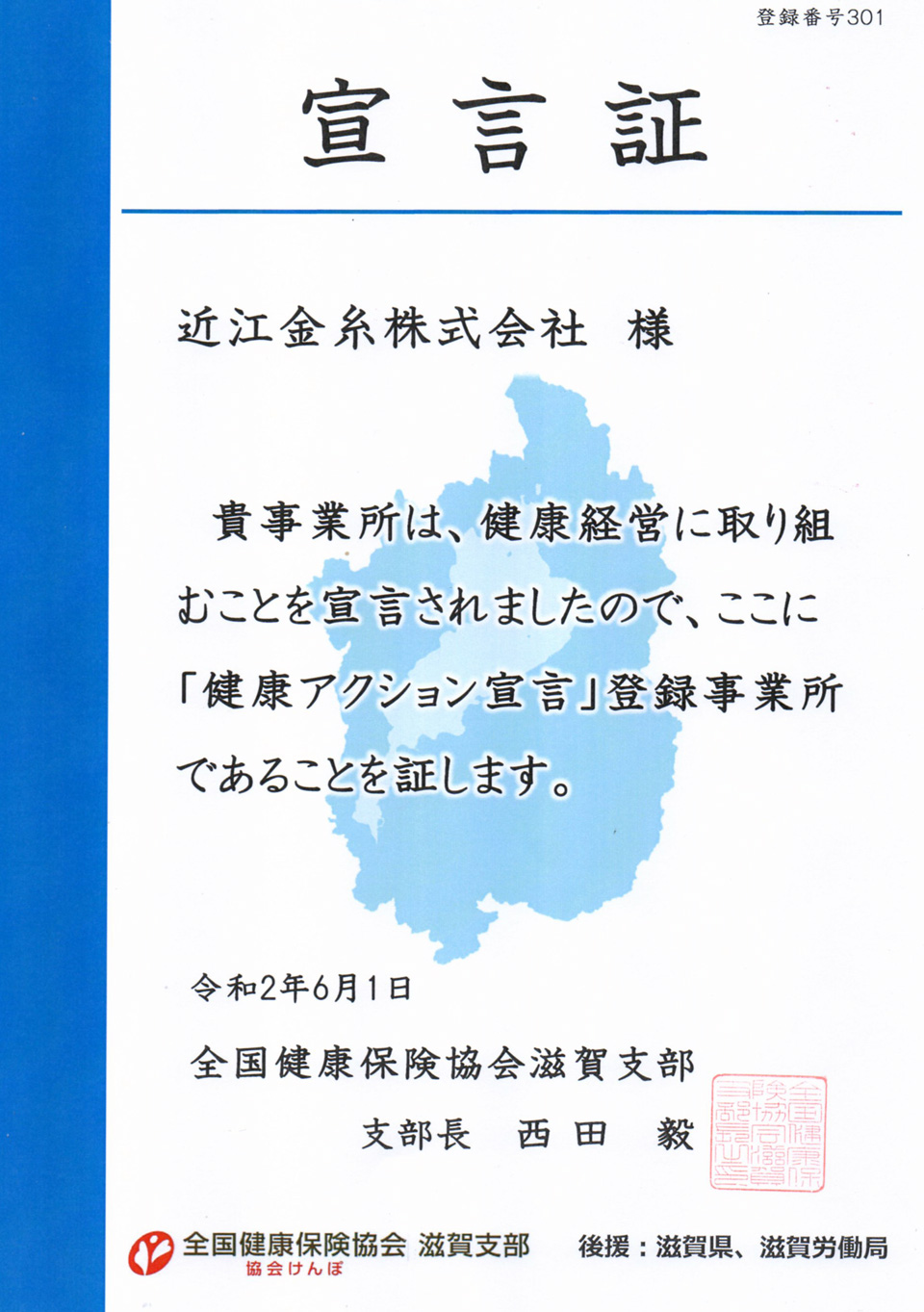 健康づくりに対して積極的に取り組んでおられる事業所様を、協会けんぽ滋賀支部が「健康づくり優良事業所」として認定し表彰する制度です。