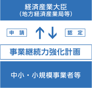 中小企業が行う防災・減災の事前対策に関する計画を経済産業大臣が認定する制度です。認定を受けた中小企業は、税制優遇や補助金の加点などの支援策が活用いただけます。